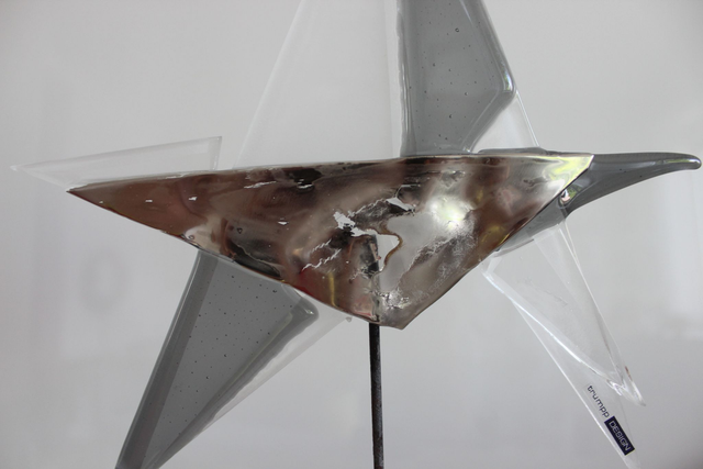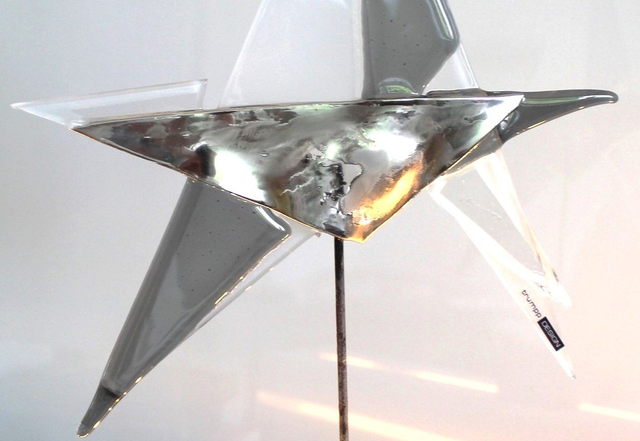 st 5 o52022 01 Glas-Stern ■ versilbert mit silbergrauen Akzenten ■ sandgestrahlt ■ Einzelstück ■ o/ 25 cm / Höhe 30 cm ■ Handmade ■ made in Germany ■ Atelierarbeit ■ Lieferzeit 2-5 Tage ■ Näheres www.trumpp-design.com / stern