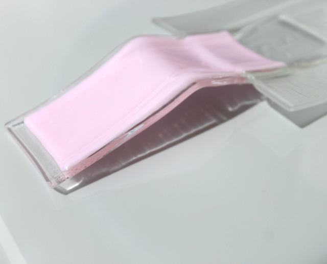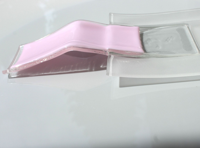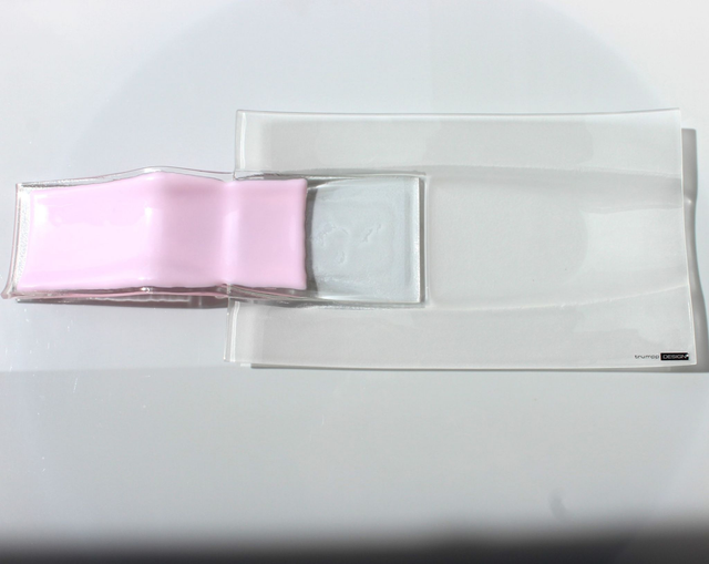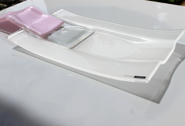 tk 1 222023 11 Extravagante Antipasti-Schale aus Glas ■ Akzent in Rosé ■ sandgestrahlt ■15 x 37 cm ■ in div. Farben erhältlich ■ mit/ohne Holz-Basis ■ Preis ohne Basis ■ Handmade ■ Lieferzeit 2-5 Tage ■ Näheres www.trumpp-design.com / tischkultur