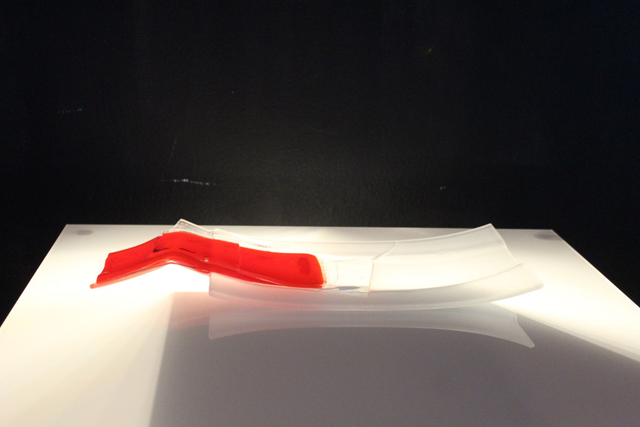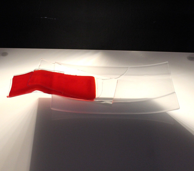 tk 1 112020 09 Antipasti-Schale aus Glas ■ Akzent leuchtend rot - tomatenrot ■ sandgestrahlt ■15 x 37 cm ■ in div. Farben erhältlich ■ mit/ohne Holz-Basis ■ Preis ohne Basis ■ Handmade ■ Lieferzeit 2-5 Tage ■ Näheres www.trumpp-design.com / tischkultur
