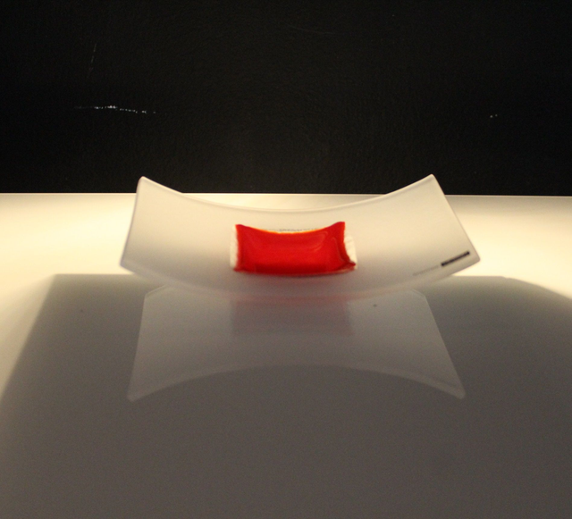 tk oo 112020 09 ■ Schale gewölbt ■ sandgestrahlt ■ Handmade ■ 11,5 x 18,5 cm ■ in div. Farben erhältlich!■ tomatenrot opac ■ Lieferzeit 3 bis 5 Tage ■ Atelierarbeit ■ Näheres www.trumpp-design.com